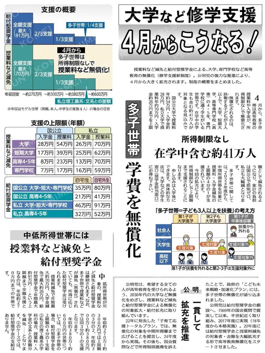長年にわたり公明党が一歩一歩前進してきた高等教育の無償化‼️令和7年4月から大きく前進‼️多子世帯学費を無償化実現‼️ 大学など修学支援、4月からこうなる! #公明新聞電子版 2025年02月15日付