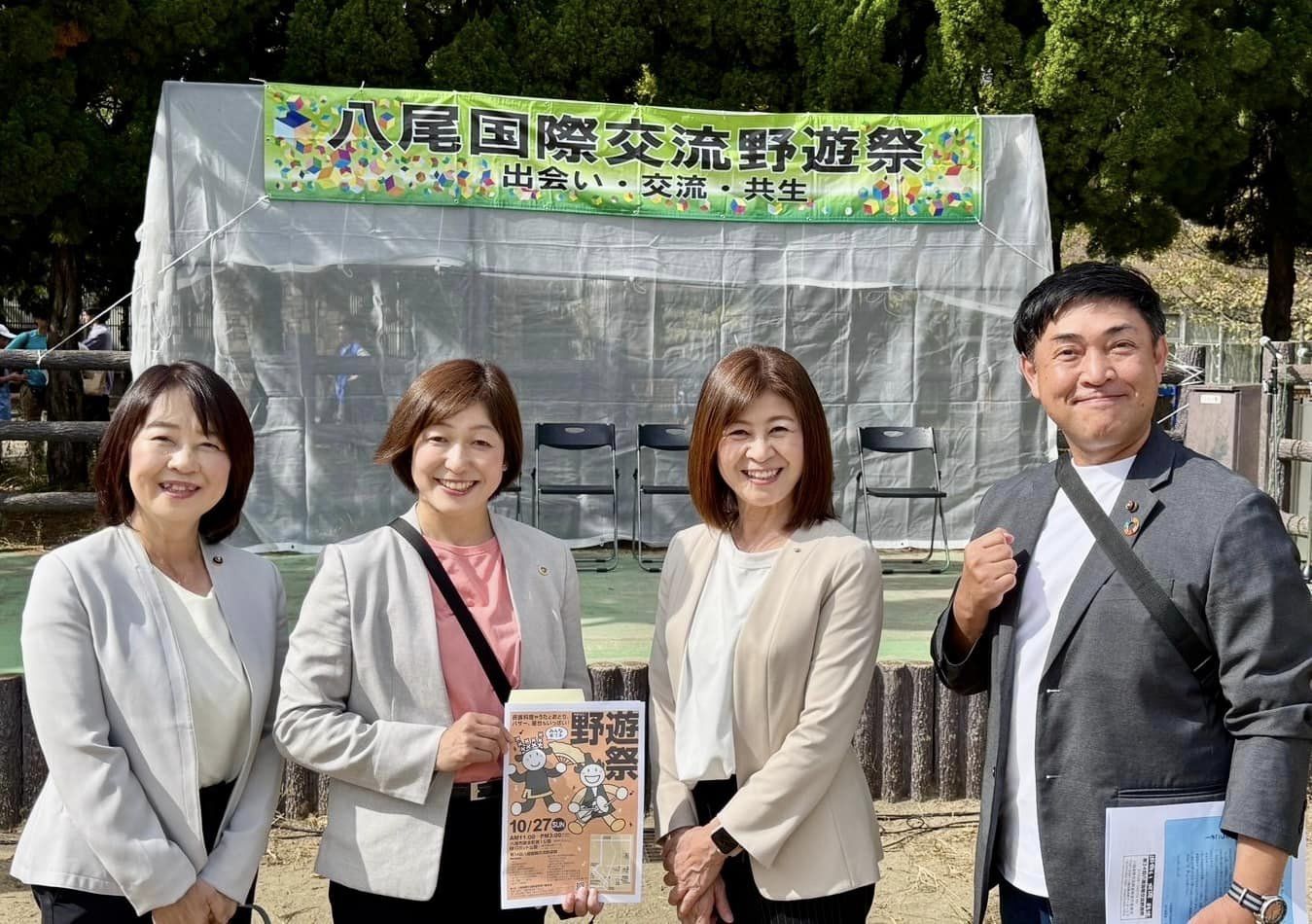 1026(土)と10/27(日)は、八尾市河内音頭まつり‼️です。本日14:46〜八尾市議会議員26名全員で、八尾市議会議員連として河内音頭を踊り、八尾小学校のグランドを一周しました♪河内音頭のお師匠…