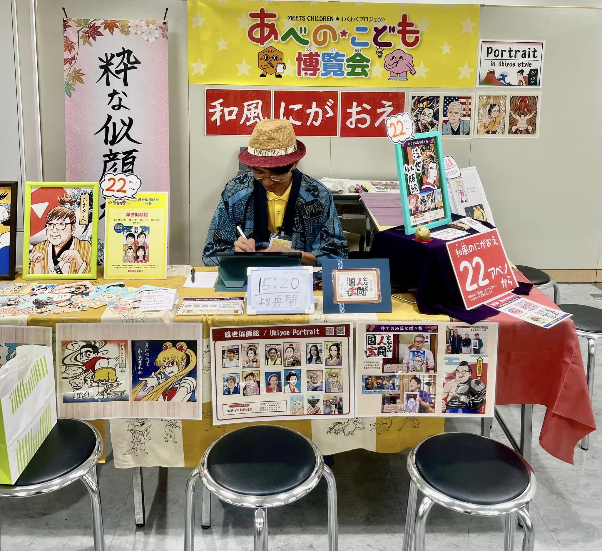 八尾が誇る芸術家🧑🎨浮世似顔絵師 #村井政善さん✨となりの人間国宝さん✨「あべの・こども博物館」‼️で、明日7/30の17:00まで開催されています!私も描いていただきました😊着物の両肩には八尾市の…