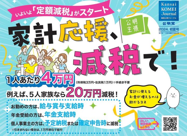 関西公明ジャーナル・2024初夏号が発刊 いよいよ6月から「定額減税」がスタート 1人あたり4万円! □「定額減税と給付金」わかりやすく解説します